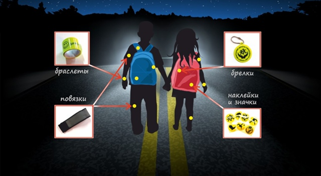 В целях снижения количества ДТП с участием детей-пешеходов необходимо использовать светоотражающие элементы на одежде. Фликер (светоотражатель) на одежде - на сегодняшний день реальный способ уберечь ребенка от травмы на неосвещенной дороге. Принцип действия его основан на том, что свет, попадая на ребристую поверхность из специального пластика, концентрируется и отражается в виде узкого пучка. Когда фары автомобиля «выхватывают» пусть даже маленький светоотражатель, водитель издалека видит яркую световую точку. Поэтому шансы, что пешеход или велосипедист будут замечены, увеличиваются во много раз. Если у машины включен ближний свет, то обычного пешехода водитель увидит с расстояния 25-40 метров. А использование световозвращателя увеличивает эту цифру до 130-240 метров! Маленькая подвеска на шнурке или значок на булавке закрепляются на одежде, наклейки - на велосипеде, самокате, рюкзаке, сумке. На первый взгляд фликер выглядит как игрушка. Но его использование, по мнению экспертов по безопасности дорожного движения, снижает детский травматизм на дороге в шесть с половиной раз! Необходимо помнить о воспитании грамотного пешехода с детства. Чтобы ребенок не нарушал Правила дорожного движения, он должен не просто их знать - у него должен сформироваться навык безопасного поведения на дороге. Наглядный пример родителей – лучший урок для ребенка! Уважаемые родители! Научите ребенка привычке соблюдать Правила дорожного движения. Побеспокойтесь о том, чтобы Ваш ребенок «засветился» на дороге. Примите меры к тому, чтобы на одежде у ребенка были светоотражающие элементы, делающие его очень заметным на дороге. Помните - в темной одежде маленького пешехода просто не видно водителю, а значит, есть опасность наезда. БЕЗОПАСНОСТЬ ДЕТЕЙ – ОБЯЗАННОСТЬ ВЗРОСЛЫХ! СВЕТООТРАЖАТЕЛИ СОХРАНЯТ ЖИЗНЬ